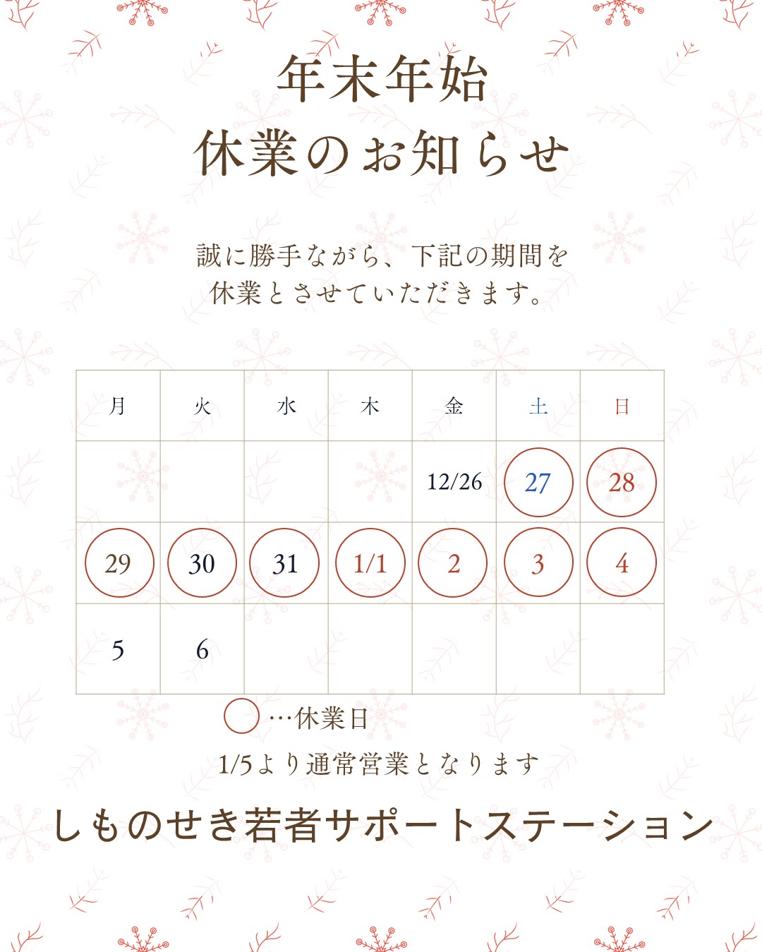 年末年始休業のご案内2025-2026 | しものせきサポステ